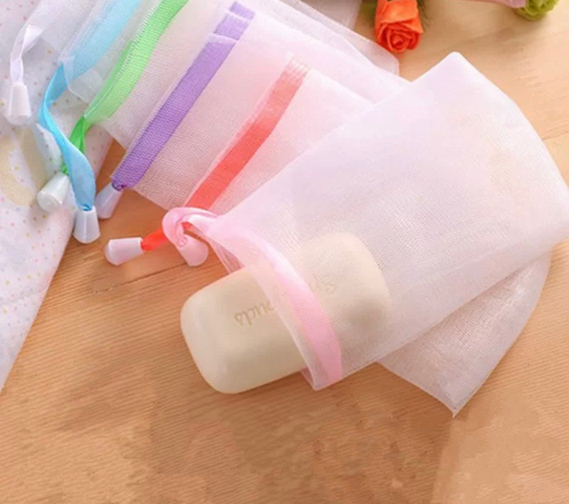 Double layered mesh soap bags create foaming action in all natural soaps.