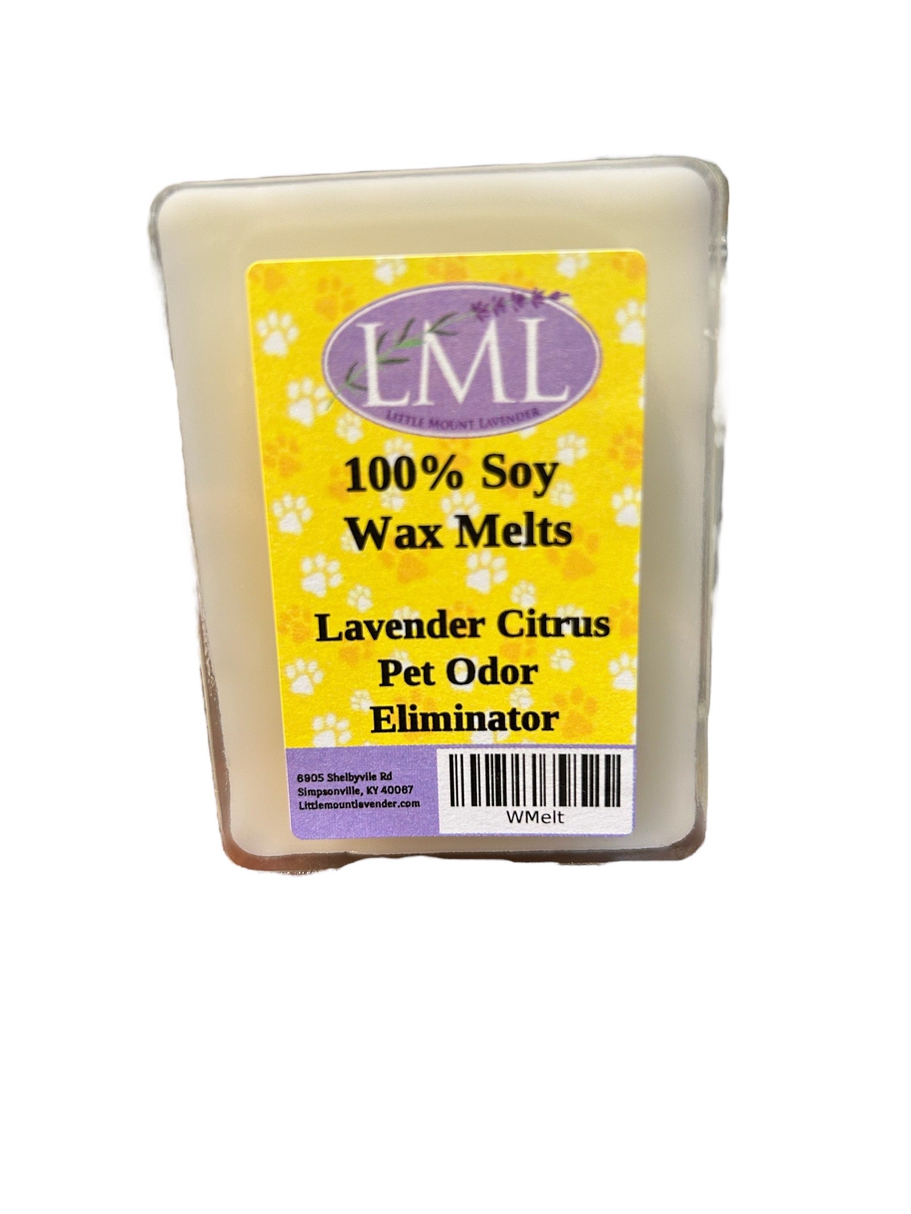 Odor eliminating wax melts are made with all natural soy wax, essential oils and metazene.